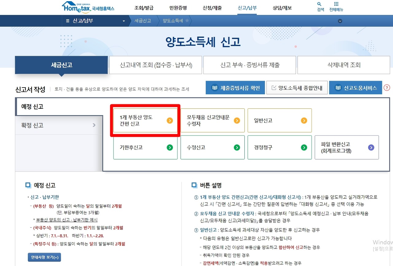 법정신고기한 내에 양도소득세 신고를 손쉽게 홈택스에서 셀프로 해보세요.
