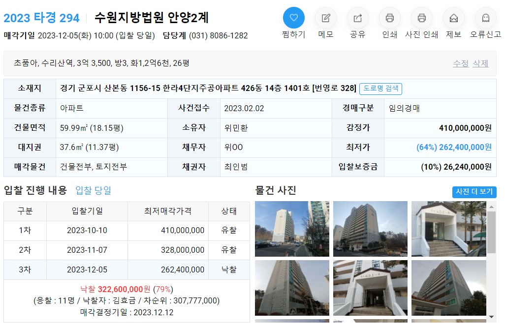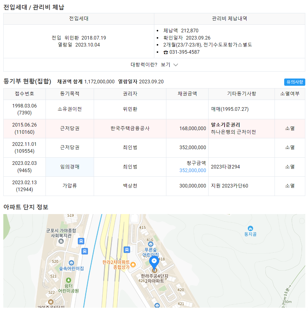 이 경매 나온 집은 다른 산본의 아파트들보다 5년 늦게 지어졌다. 주변에 초등학교뿐이며, 수리산역이 가깝게 있다.